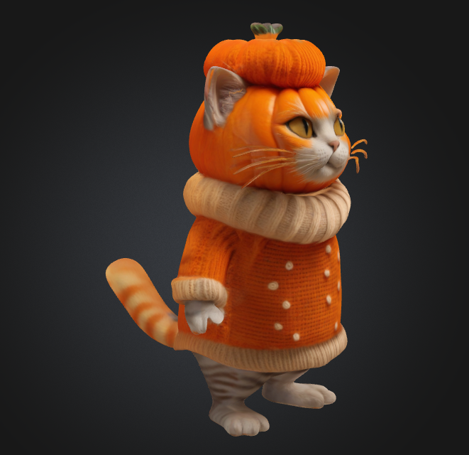 In a quaint village where seasons were crafted by magical artisans, lived a cat who specialized in weaving autumn's warmth into cozy sweaters. Each fall, Pumpkin Spice Whiskers would collect fallen leaves, sunset colors, and the essence of warm cider, knitting them into enchanted garments that could make anyone feel the comfort of a perfect autumn day. Her pumpkin hat, they say, was gifted by the Harvest Spirit himself, allowing her to sense when someone needed an extra dose of comfort. Children would follow the trail of golden leaves that fell from her sweater, knowing they'd find her serving tea and telling tales of magical autumn adventures in her cottage made of knitted sunshine.