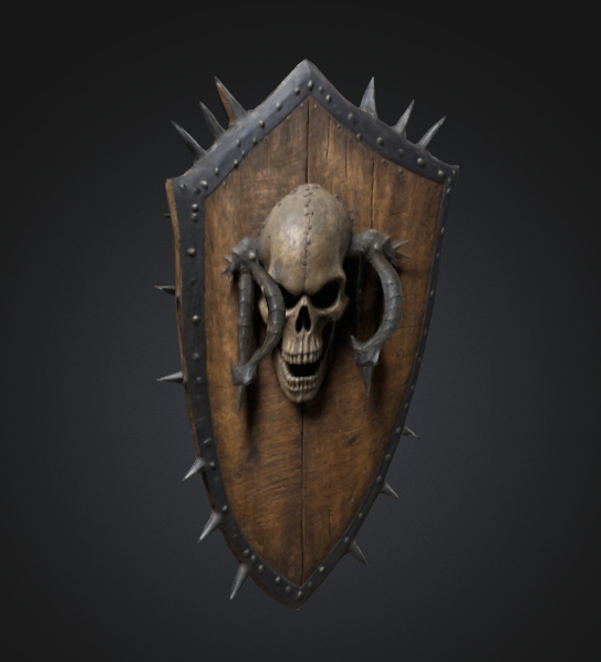 The Dreadshield wasn't created by a craftsman but born from a battlefield pact. General Malgrim, facing certain defeat, promised his soul to death itself if his fallen soldiers could rise once more. They triumphed, but death claimed Malgrim's face as payment, transforming it into this shield. Now, the shield chooses its bearer through dreams, calling to warriors facing impossible odds. Those who carry it cannot be flanked in battle, as the skull's hollow eyes see in all directions at once. The small skull centerpiece is said to whisper strategy from dead generals, while the spikes collect the souls of the slain to fuel its protective magic. Its greatest power reveals itself at twilight - when bloodied in battle, the skull briefly comes alive to release a chilling battle cry that empowers allies while seeding fear in enemies.